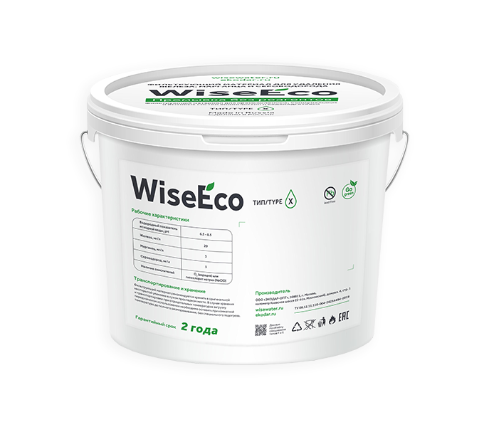 WiseEco Х - фильтрующий материал предназначен для очистки артезианских вод в составе бытовых, коммунальных и промышленных систем водоочистки и водоподготовки. Эффективно удаляет железо, марганец и сероводород при высоких скоростях фильтрации и низких расходах воды при регенерации. WiseEco Х предназначен для очистки артезианских вод в составе бытовых, коммунальных и промышленных систем водоочистки и водоподготовки. Высокие скорости фильтрации позволяют уменьшить требуемую площадь под водоочистное оборудование по сравнению с традиционными методами очистки. Невысокие расходы воды при регенерации позволяют снизить требования к пропускной способности канализации и септиков, а также к пропускной способности управляющих клапанов. Загрузка не требует использования реагентов для регенерации фильтрующих свойств. Благодаря этой инновационной особенности материал не причиняет вреда окружающей среде и обеспечивает экологическую безопасность для вас и ваших близких.